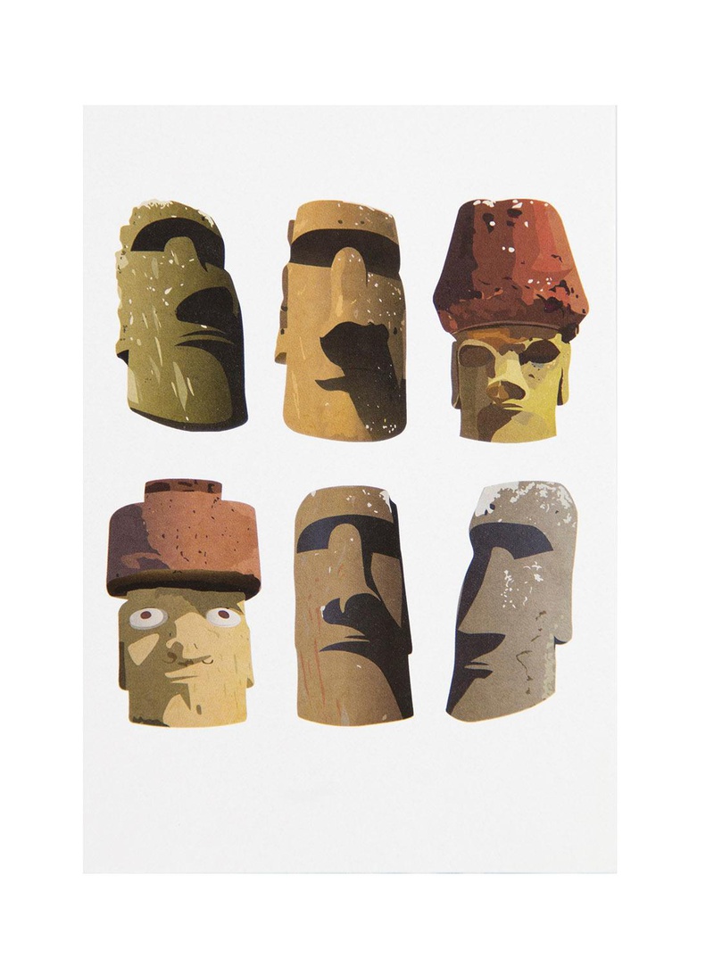 Carte Postale expo "Île de Pâques" - modèle les 6 têtes de Moaï