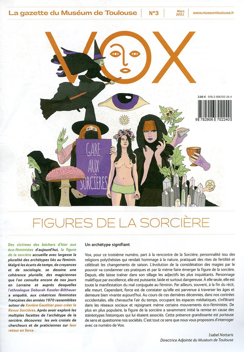 Ce numéro de Vox vous fait découvrir la figure de la sorcière: des victimes des bûchers d'hier aux éco-féministes d'aujourd'hui. Elle accueille avec largesse la pluralité des archétypes liés au féminin. Le grand entretien est avec Déborah Kessler-Bilthauer, sociologue et antrhopologue de la santé et auteure du livre "Guérisseurs contre sorciers dans la Lorraine du XXIe siècle".