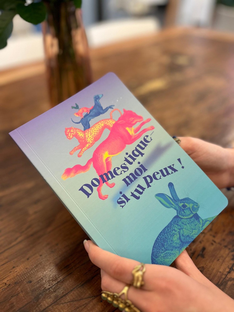 Le carnet ligné à l'éffigie de l'exposition "Domestique-moi si tu peux" se ferme par un élastique rose. Il est disponible spécialement en édition limitée dans le cadre de l'exposition temporaire.